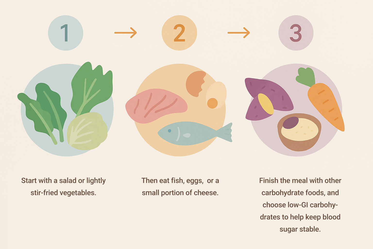 Eating vegetables and protein before carbohydrates can significantly reduce post-meal blood sugar spikes.