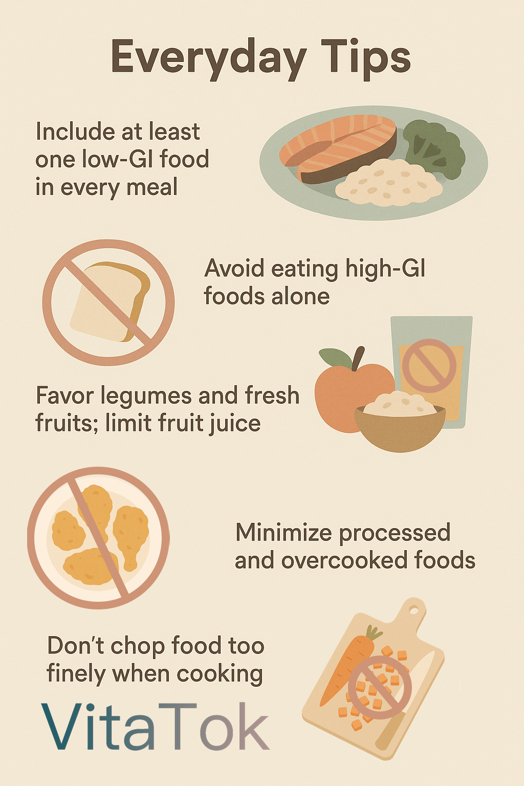 - Evită consumul individual de alimente cu IG ridicat